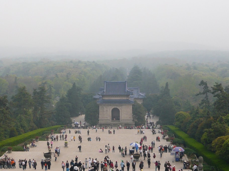Pour vous présenter le mausolée de Sun Yatsen, je préfère vous montrer la vue d'abord. Remarquez les nombreuses marches que j'ai du monter pour vous poster cette photo - et pour pouvoir contempler ce paysage-. Nanjing signifie "La capitale du sud" car en Chinois Nan signifie Sud et Jing signifie Capitale (bien sûr, les termes en pinyin ne sont pas très précis). Sun Yatsen est l'un des pères de la république de Chine et son mausolée est très bien entretenu. Un concours international a été mis en place pour décider du design du mausolée et ç'a été gagné par un Chinois qui a imaginé ce park en forme de cloche.