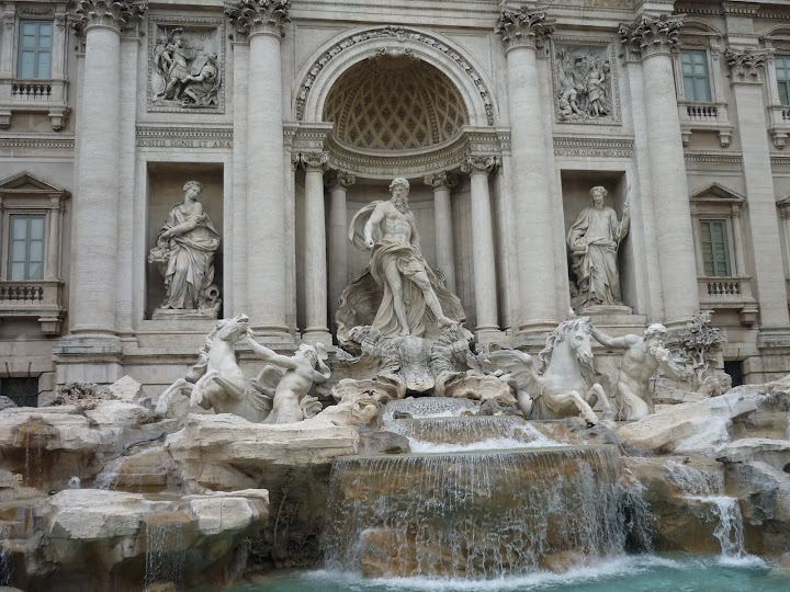 Ca ne paye pas de mine en photo, surtout quand c'est aussi petit, mais cette fontaine est étonnante. Remarquez les fenetres sur les cotés, elles sont a la taille normale. Cela signifie que la hauteur de la statue principale dépasse un étage. En fait, la fontaine est juste derriere un immeuble et occupe toute la taille de l'immeuble en question. C'est juste gigantesque.